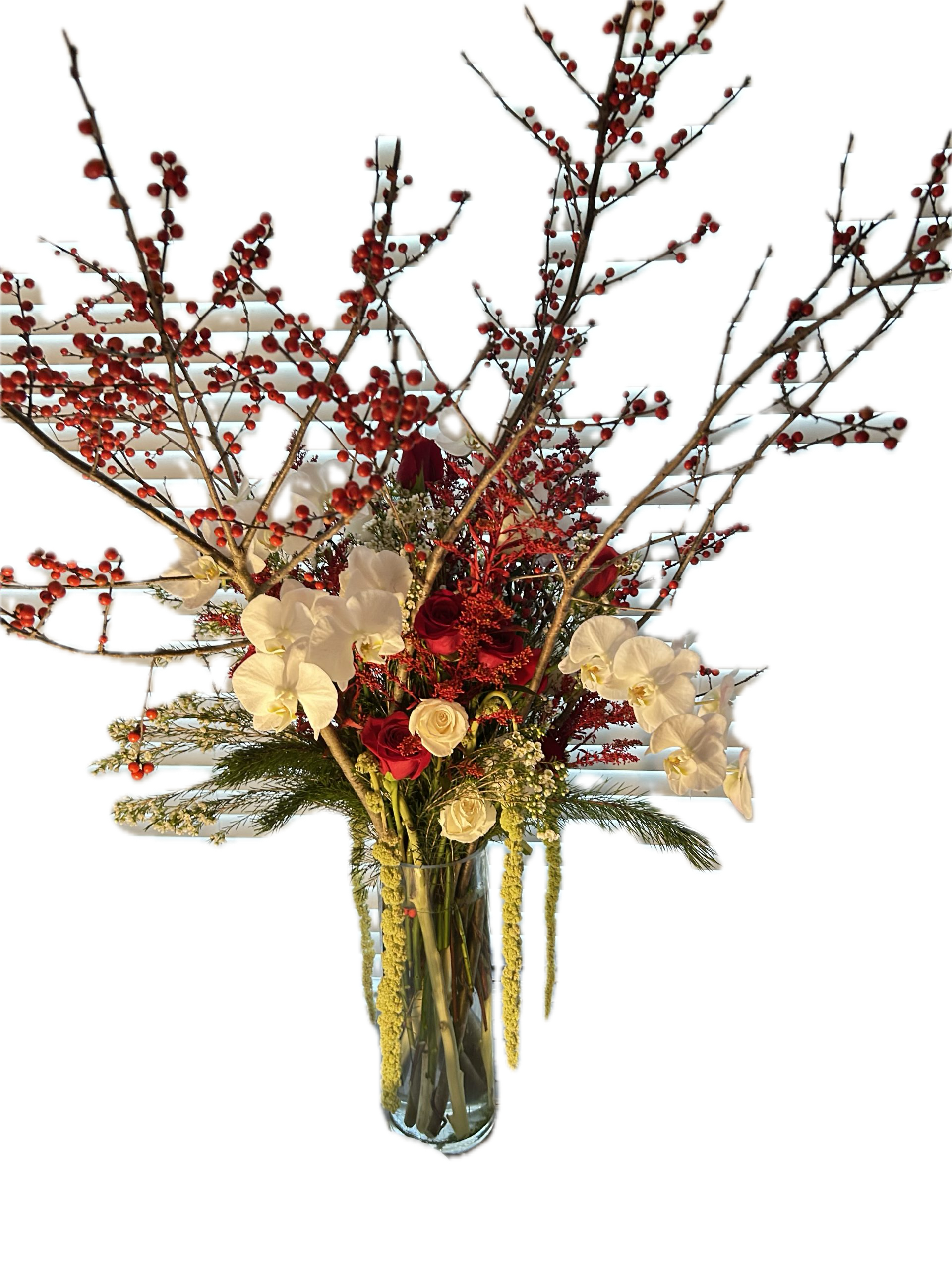 without orchids, replaces w florist choice. Branches are seasonal call for choices and availability.